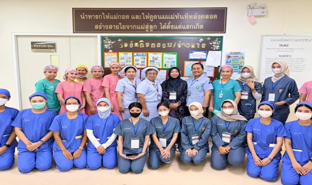Delegasi juga melakukan kunjungan profesional ke Maharaj Hospital, salah satu rumah sakit tersier terbesar di Thailand Selatan. Tim berkesempatan mengamati berbagai unit pelayanan kritis dan spesialis, seperti Medical Intensive Care Unit (MICU), Respiratory Care Unit (RCU), Surgical Intensive Care Unit (SICU), Pediatric Development Center, serta Maternal Ward. Kunjungan ini memberikan wawasan penting terkait manajemen layanan tersier, sistem tata kelola pasien, hingga pendekatan interdisipliner dalam pelayanan kesehatan di Thailand.