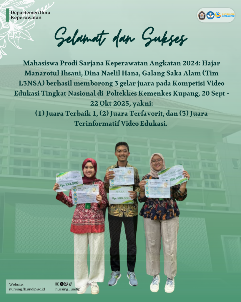 This achievement also strengthens Undip Nursing’s position as an educational institution that continuously fosters competence, creativity, and leadership among its students at both national and international levels. [AN]