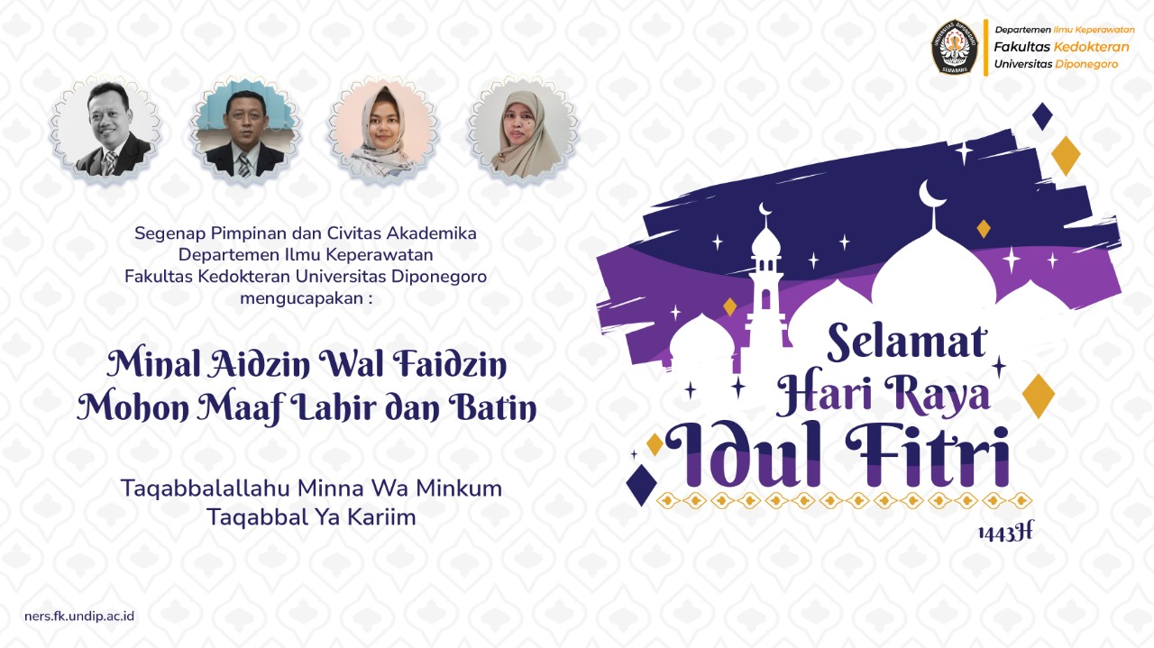 The entire academic community of the Bachelor of Nursing Study Program, Department of Nursing, Faculty of Medicine, Diponegoro University wish all Moslem academicians a Happy Eid Al-Fitr 1443 H.
